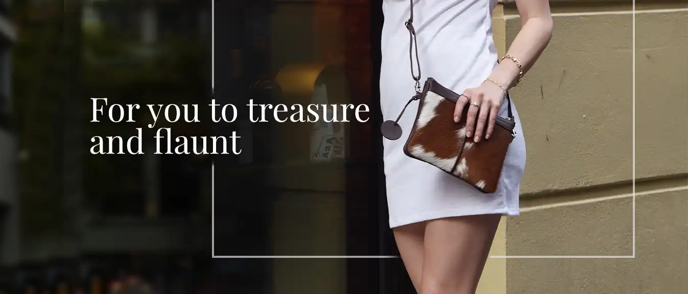 We are committed to conscious luxury. Every design is crafted from ethically sourced, premium-grade cowhide leather, custom tanned to preserve its natural beauty and distinctive character. No two pieces are ever the same โ each is as unique as its owner.